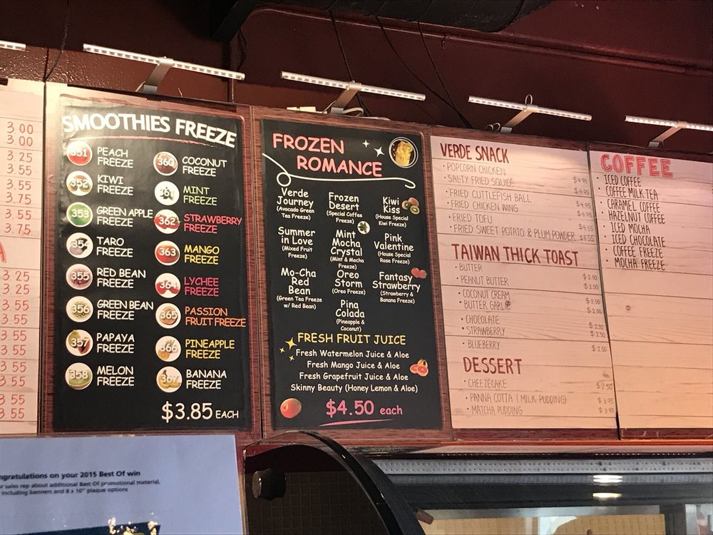 Welcome to Verde Tea Cafe, a vibrant haven for tea lovers nestled at 852 Villa St, Mountain View, CA. This café stands out with its expansive menu, offering an impressive array of vegetarian options, delightful smoothies, and unique milk teas, including wheat germ and coffee varieties that are a rarity in the area.